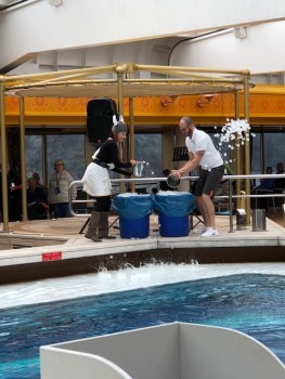 Ice to cool the 85 degree pool. Not quite enough, folks.
