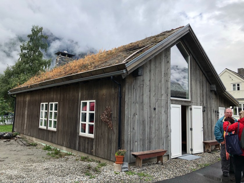 We visited the Norsk Natursenter. Really amazing displays of now Norway was formed. There was a panoramic movie taking us through the area and we finally got to see the fall! The highlight was seeing the goats on the roof. Since the roof is made of grass it grows in the summer. So they put goats up there to “mow” the grass. They even built little houses for them up there.